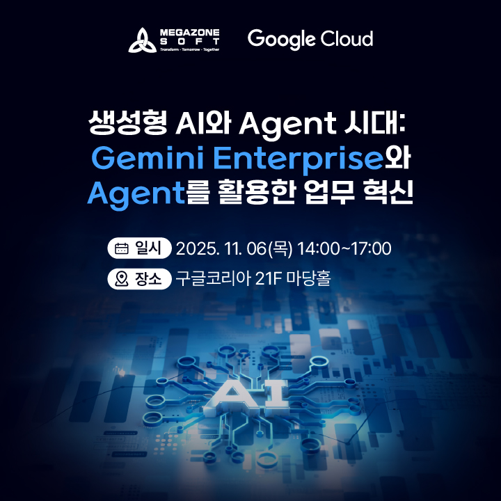 메가존소프트는 2009년부터 한국 최초로 Google과의 파트너쉽을 체결하였으며 아시아 No.1 클라우드 서비스 관리 업체(MSP)로서 고객의 클라우드 여정과 비즈니스 혁신을 위한 체계적인 서비스를 제공합니다.