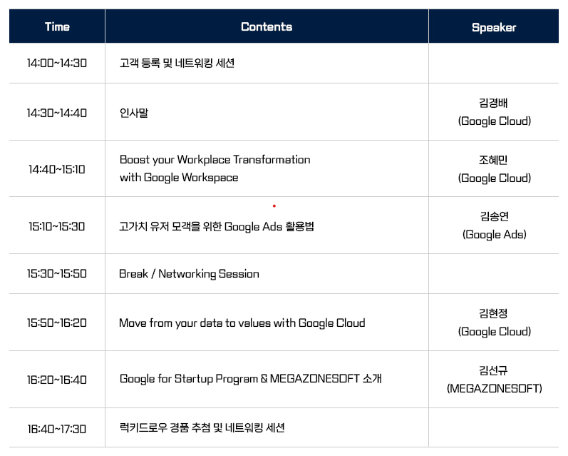 더불어 Startup을 위한 Google for Startup Program과 메가존소프트의 Startup 대상 기술 지원 및 특별 프로그램도 함께 소개 드릴 예정입니다.