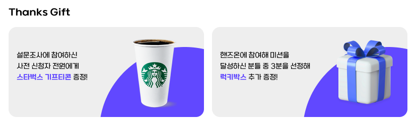🎁만족도 설문조사에 참여하신 사전 참가 신청자 전원에게는 스타벅스 기프티콘을 드립니다!