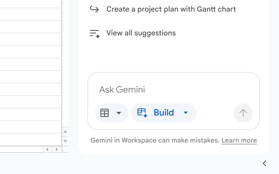 - Sheets의 Workspace용 Gemini가 활성화된 경우 기본적으로 사용할 수 있습니다.