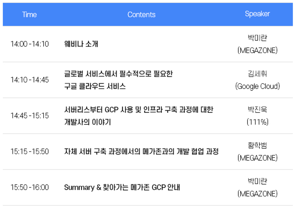 메가존과 구글 클라우드 코리아가 주최하는 “Google Cloud Gaming & Media Online Academy – 글로벌 게임사 111% 사례로 알아보는 안정적인 글로벌 게임 서비스를 위한 구글 클라우드 구축 전략 웨비나”에 여러분을 초대합니다.