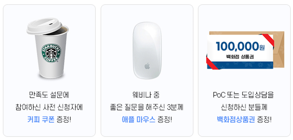 - 만족도 설문 경품은 사전 등록하신 분들 중 만족도 설문에 참여하신 분들께 제공합니다.