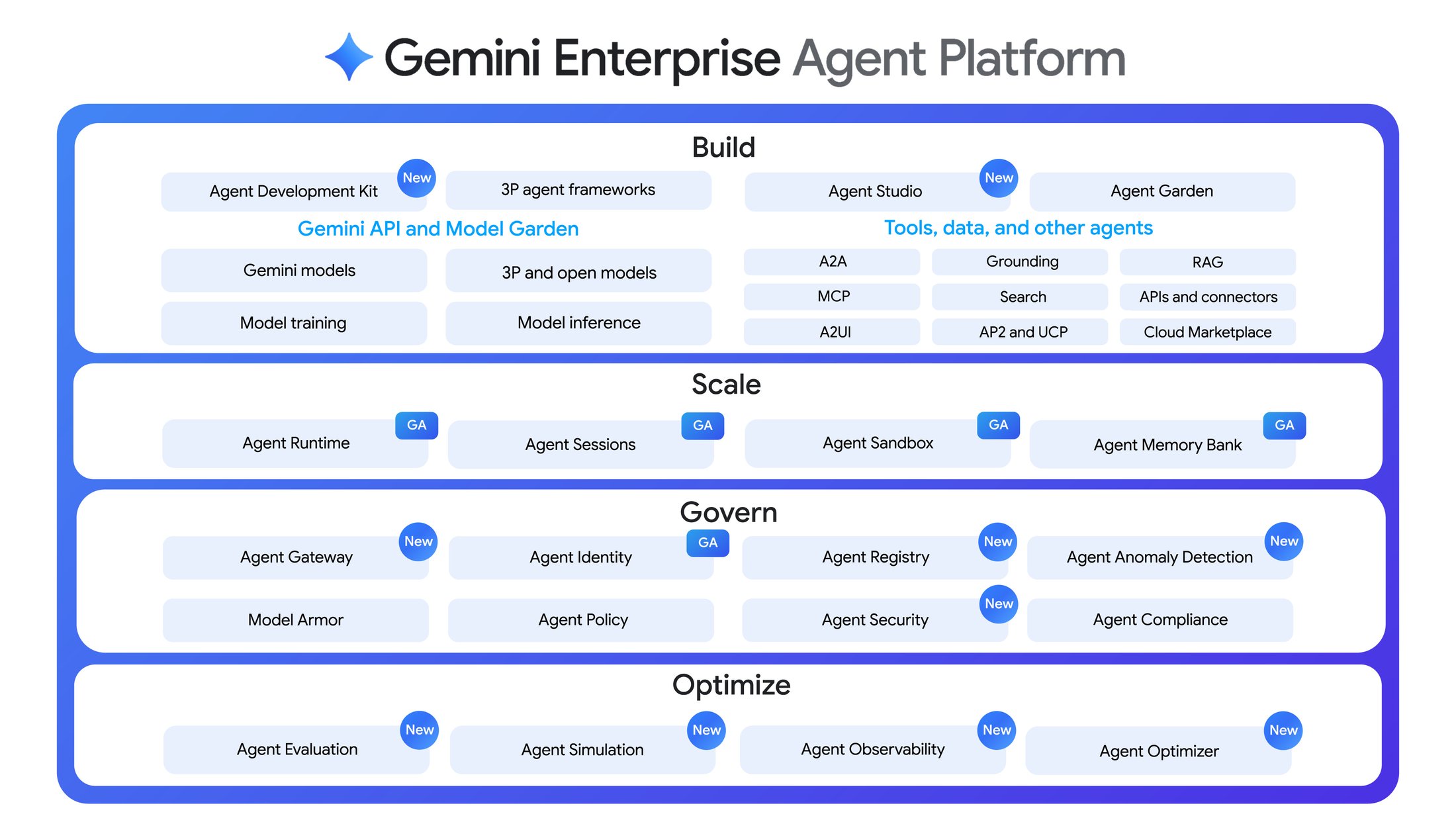 현실적인 도전 과제를 해결하기 위해 구글 클라우드는 Gemini Enterprise Agent Platform을 통해 에이전트를 구축하고, 확장하고, 통제하고, 최적화하는 전체 수명주기를 하나의 플랫폼으로 묶은 것입니다.