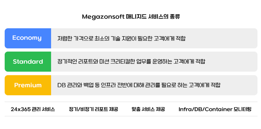 메가존소프트는 2009년부터 한국 최초로 Google과의 파트너쉽을 체결하였으며 아시아 No.1 클라우드 서비스 관리 업체(MSP)로서 고객의 클라우드 여정과 비즈니스 혁신을 위한 체계적인 서비스를 제공합니다.