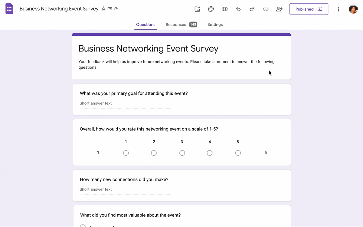Gemini를 사용하여 긴 서술형 질문의 응답을 요약하면, 사용자는 대량의 텍스트를 자세히 검토하지 않고도 응답의 전반적인 감정을 더 빨리 이해하고, 피드백을 분석하고, 양식에서 인사이트를 얻는 데 도움이 됩니다.