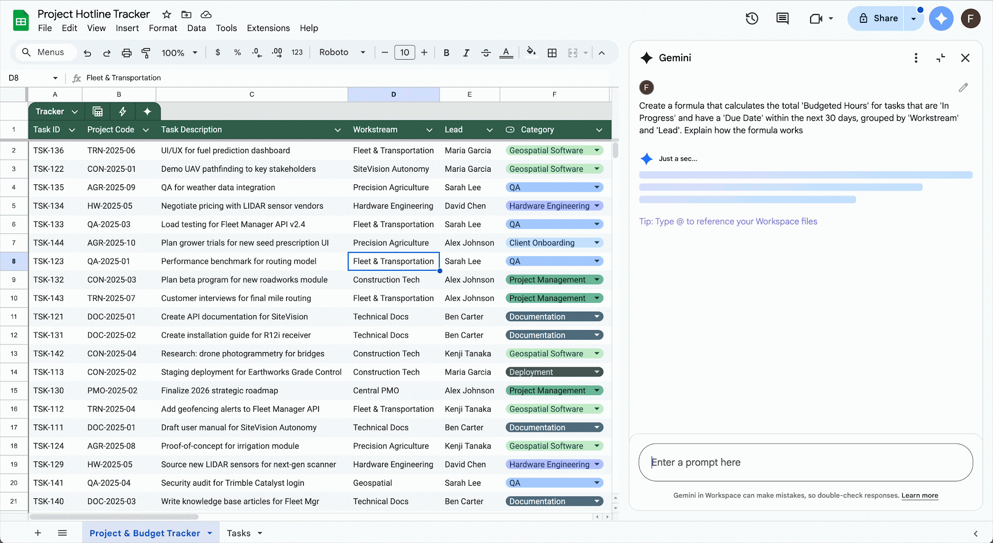 이러한 업데이트를 통해 Gemini는 완전하고 합리적인 응답을 제공하여 수식 생성을 더욱 스마트하고 탄력적으로 만들고, 사용자가 시트에서 수행되는 수식과 계산을 이해하는 데 도움을 줄 수 있습니다.
