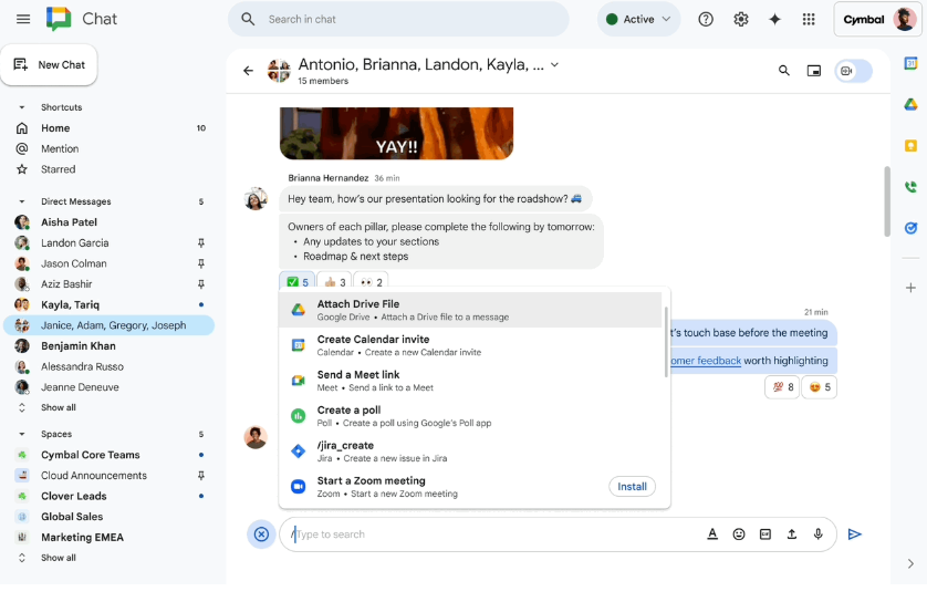 [Chat] 개편된 통합 메뉴로 Google Chat과 Workspace 작업 빠르게 찾아 사용하기