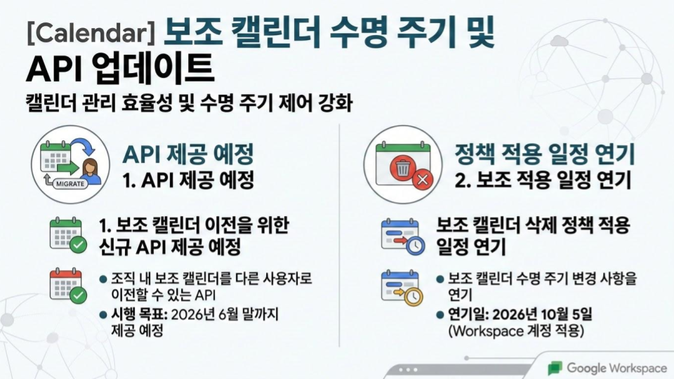 📌 지원되는 버전 : Google Workspace Business Standard 이상, Enterprise Standard 이상 현재 Google Meet 녹화 파일은 소유자가 명시적으로 허용하지 않는 한 다운로드 및 복사가 기본적으로 제한되어 있습니다. 이로 인해 파일 소유자가 아닌 시청자는 드라이브 뷰어 내의 ‘Gemini에게 질문하기(Ask Gemini)’ 기능도 기본적으로 사용할 수 없었습니다. 2026년 4월 30일부터 새롭게 생성되는 녹화본에 대해 이 기본 설정이…